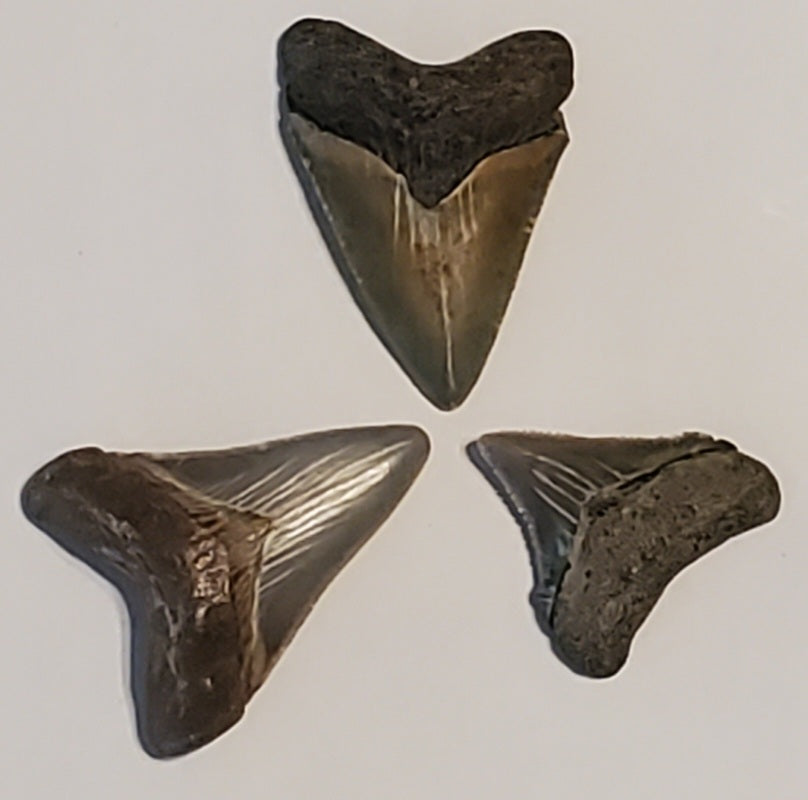 Fossilized Megalodon Teeth from the southeastern United States. These teeth are often...
