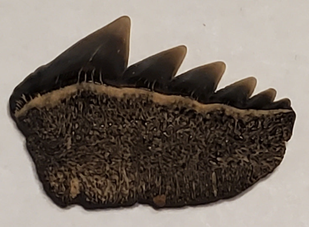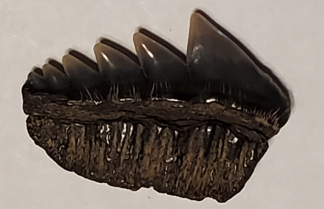 This is a beautiful Cow Shark (Notorynchus sp.) tooth from Calvert Cliffs Maryland. It is Miocene age.This is a species of shark that existed with Megalodons.
