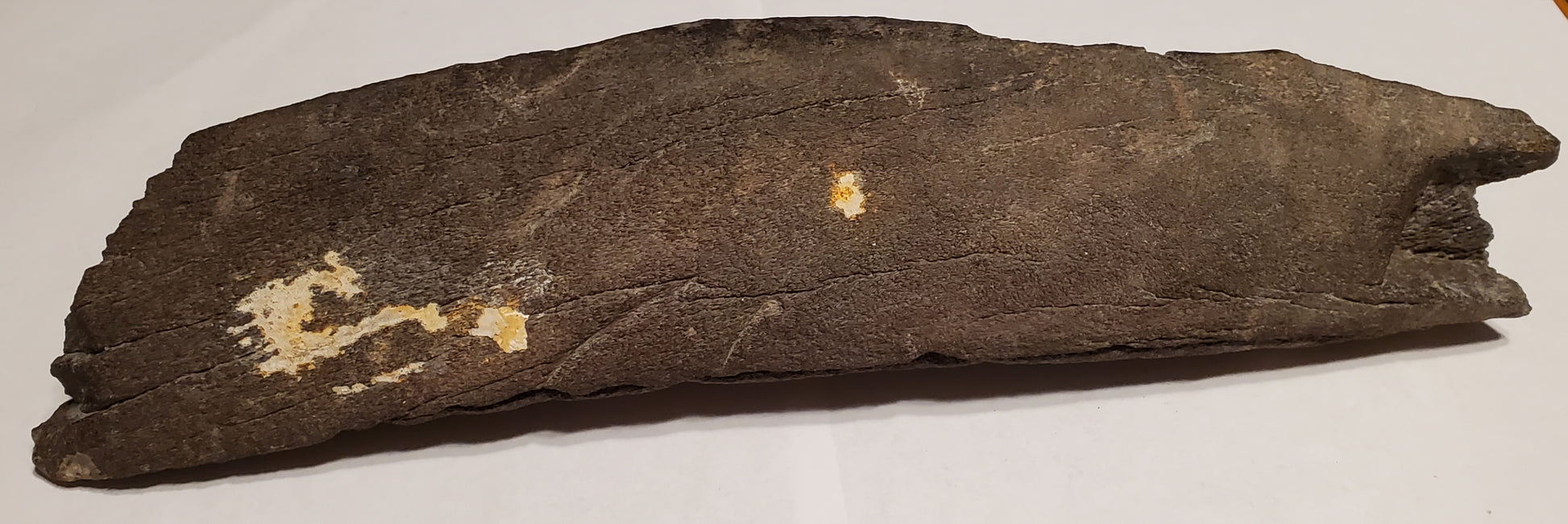 12" shark (most likely Megalodon) bitten fossil Baleen whale jaw with clearly visible shark (most likely Megalodon) feeding marks all over it.