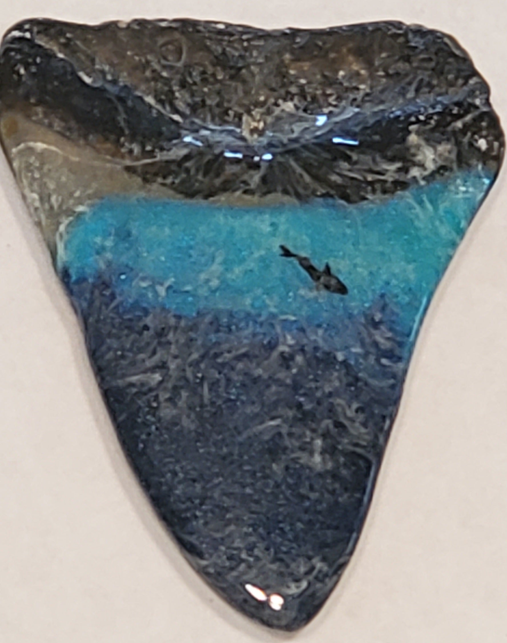 This 2.78" Megalodon tooth was selected to be used in artwork with skill and talent this tooth is painted on the back with a seascape.
