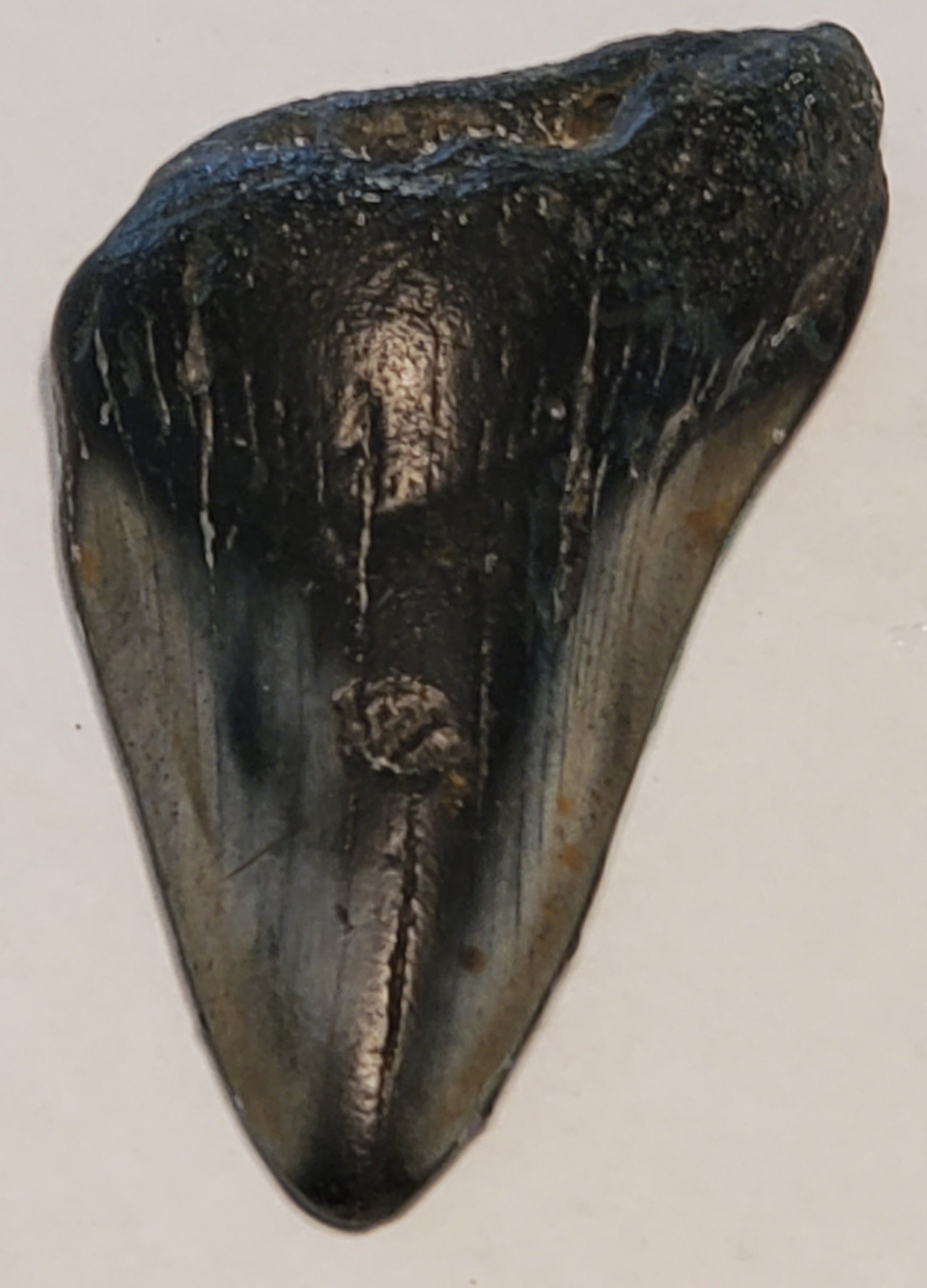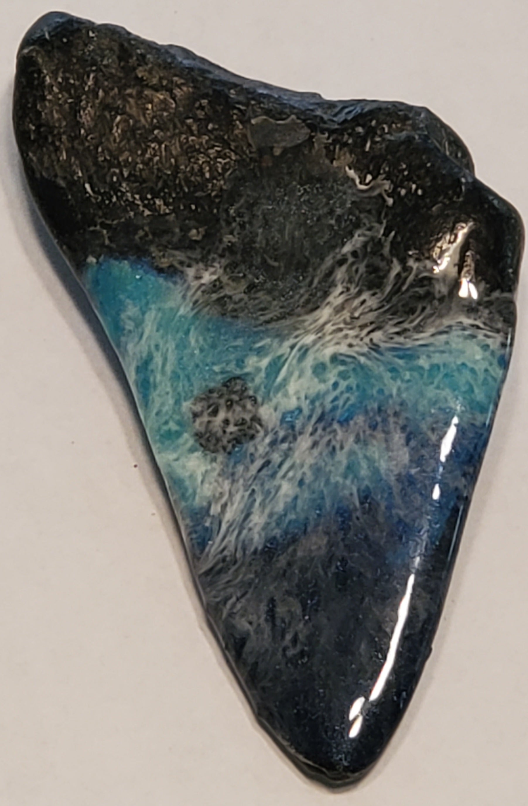 This 2.78" Megalodon tooth was selected to be used in artwork with skill and talent this tooth is painted on the back with a seascape.
