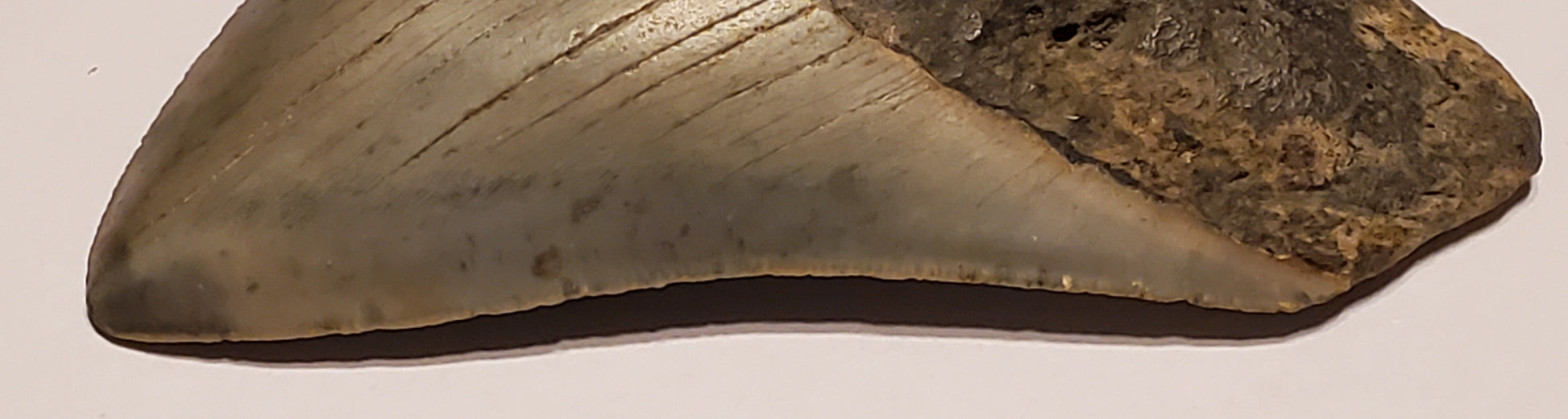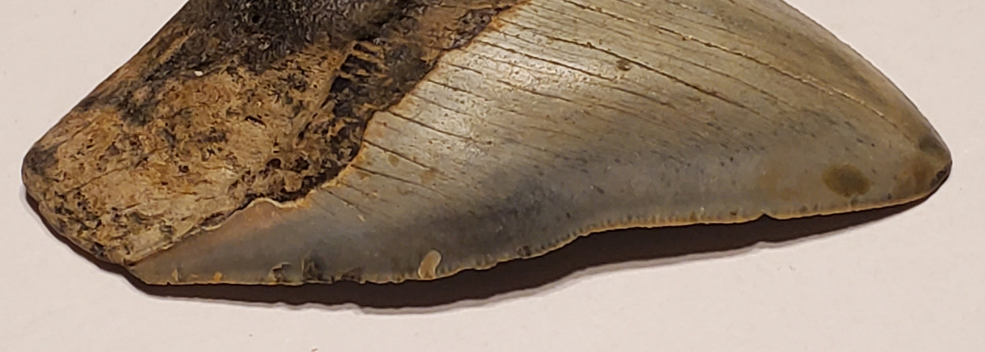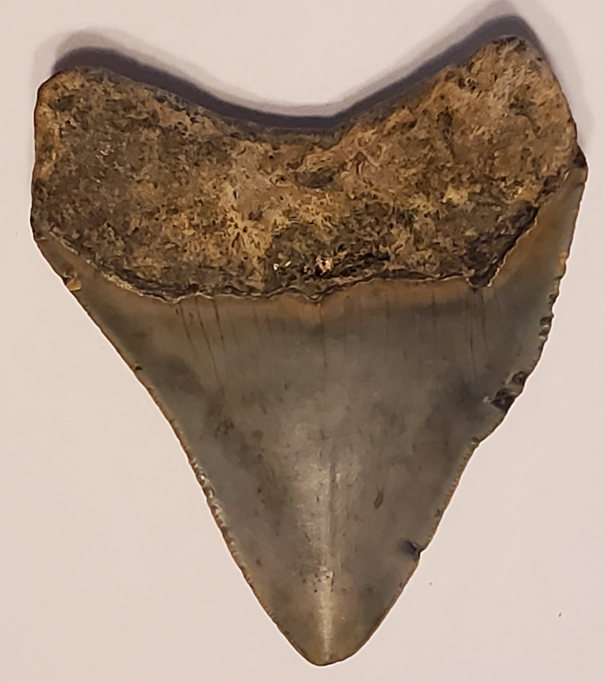 If you are seeking an outstanding Megalodon for a collection or just as a single display. This Megalodon tooth with it's deformity makes it a truly one of a kind Megalodon tooth.