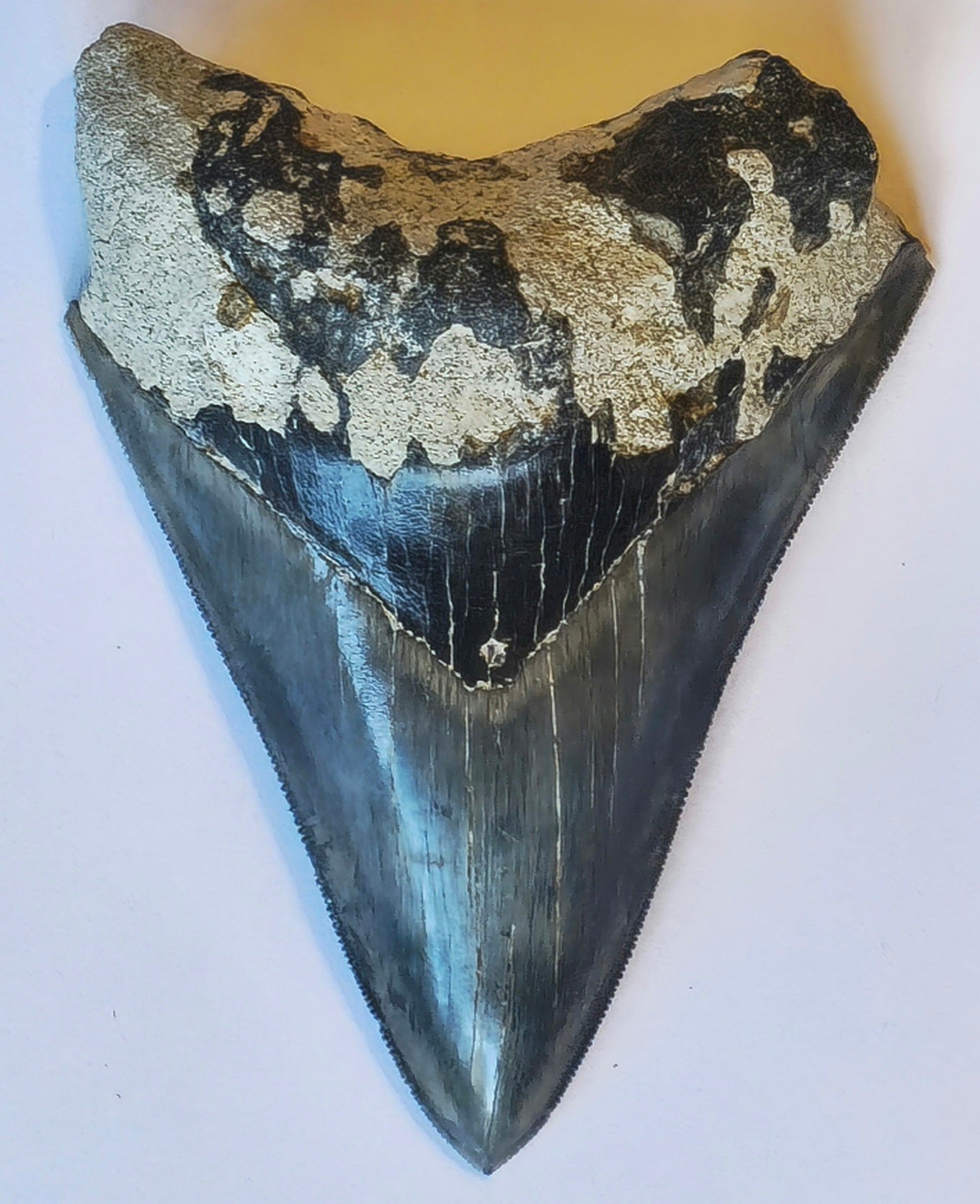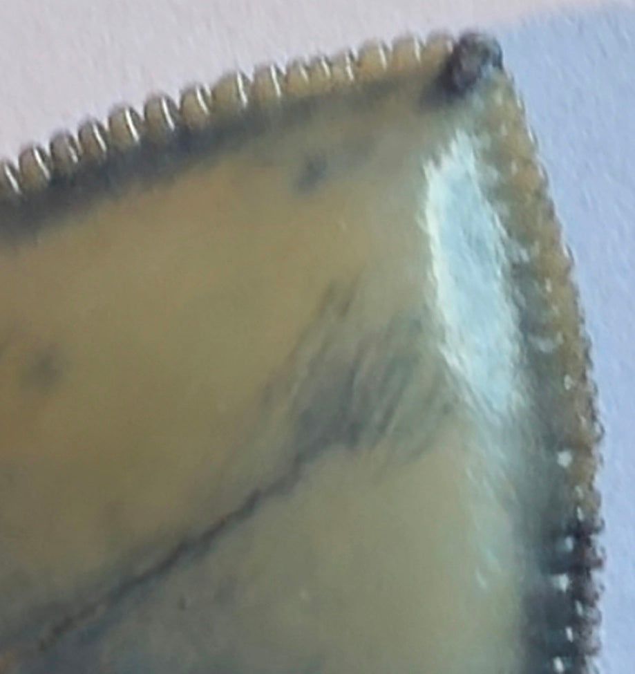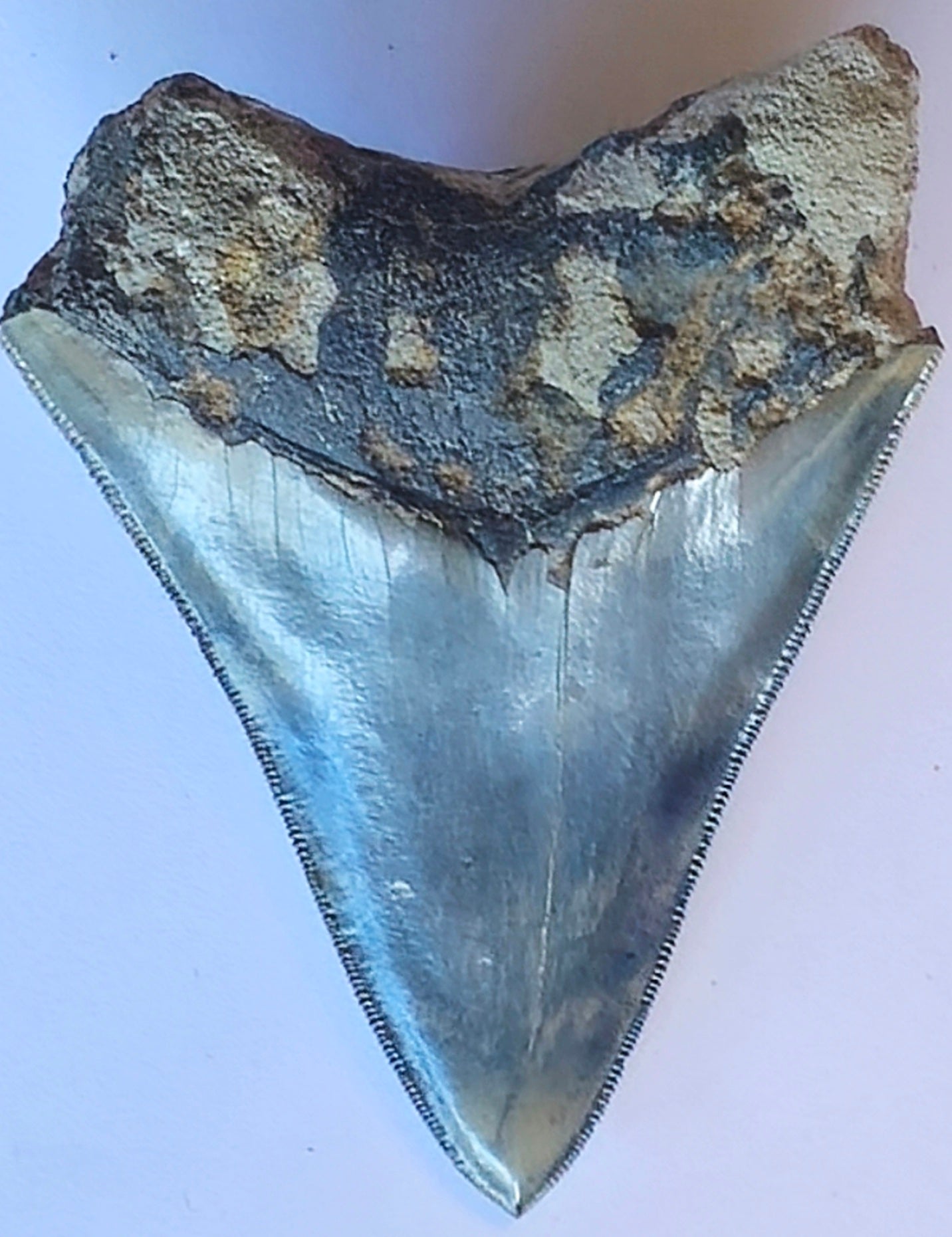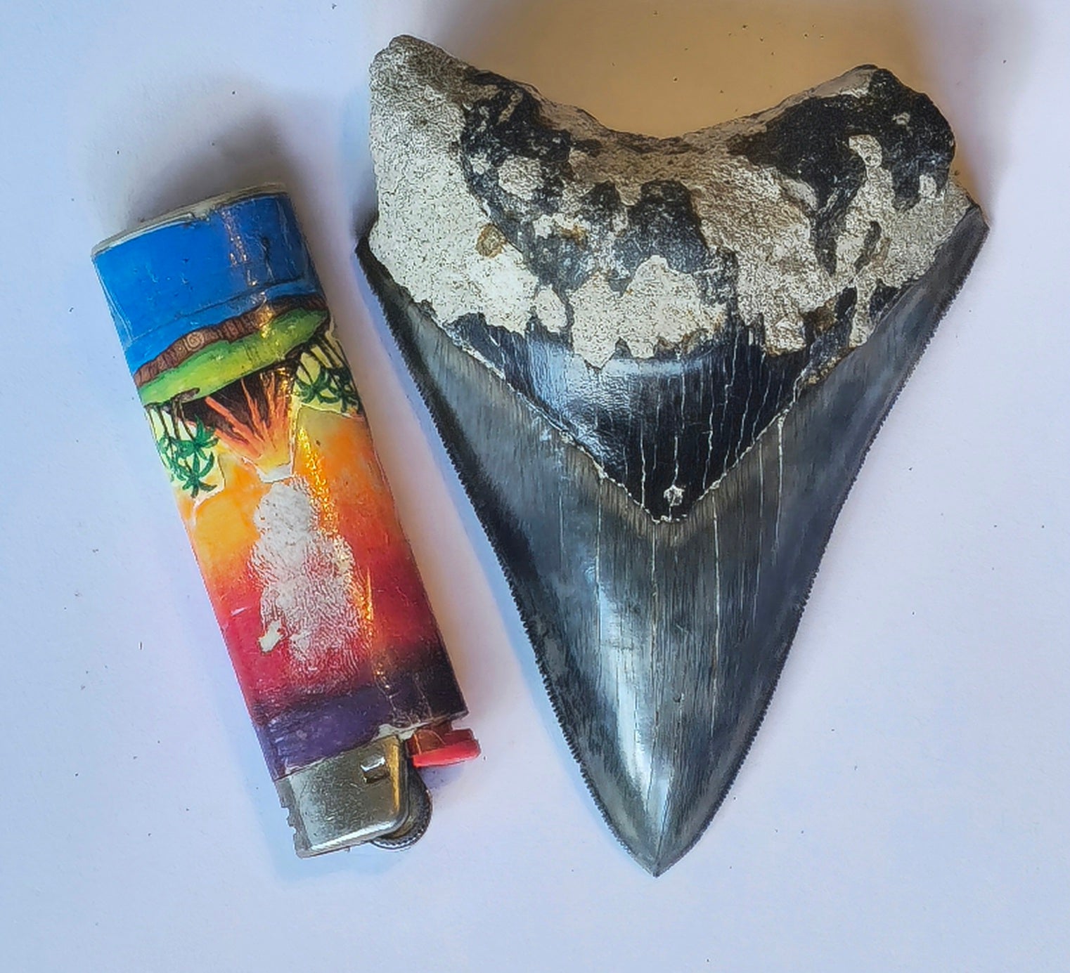 A must have for the serious fossil collection. Photos of this fossil do not in any way replace holding it in your hand feeling it's 5 ounce weight or how incredibly sharp the serrations an piercing tip is.