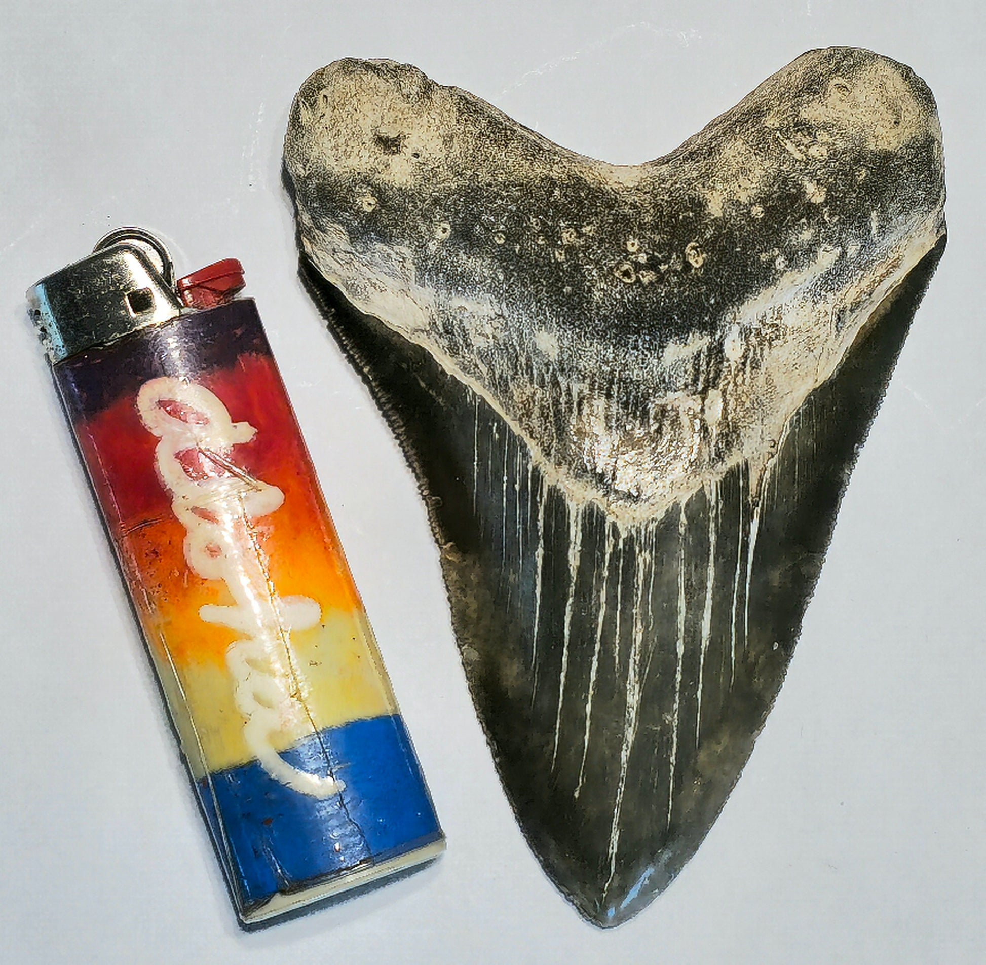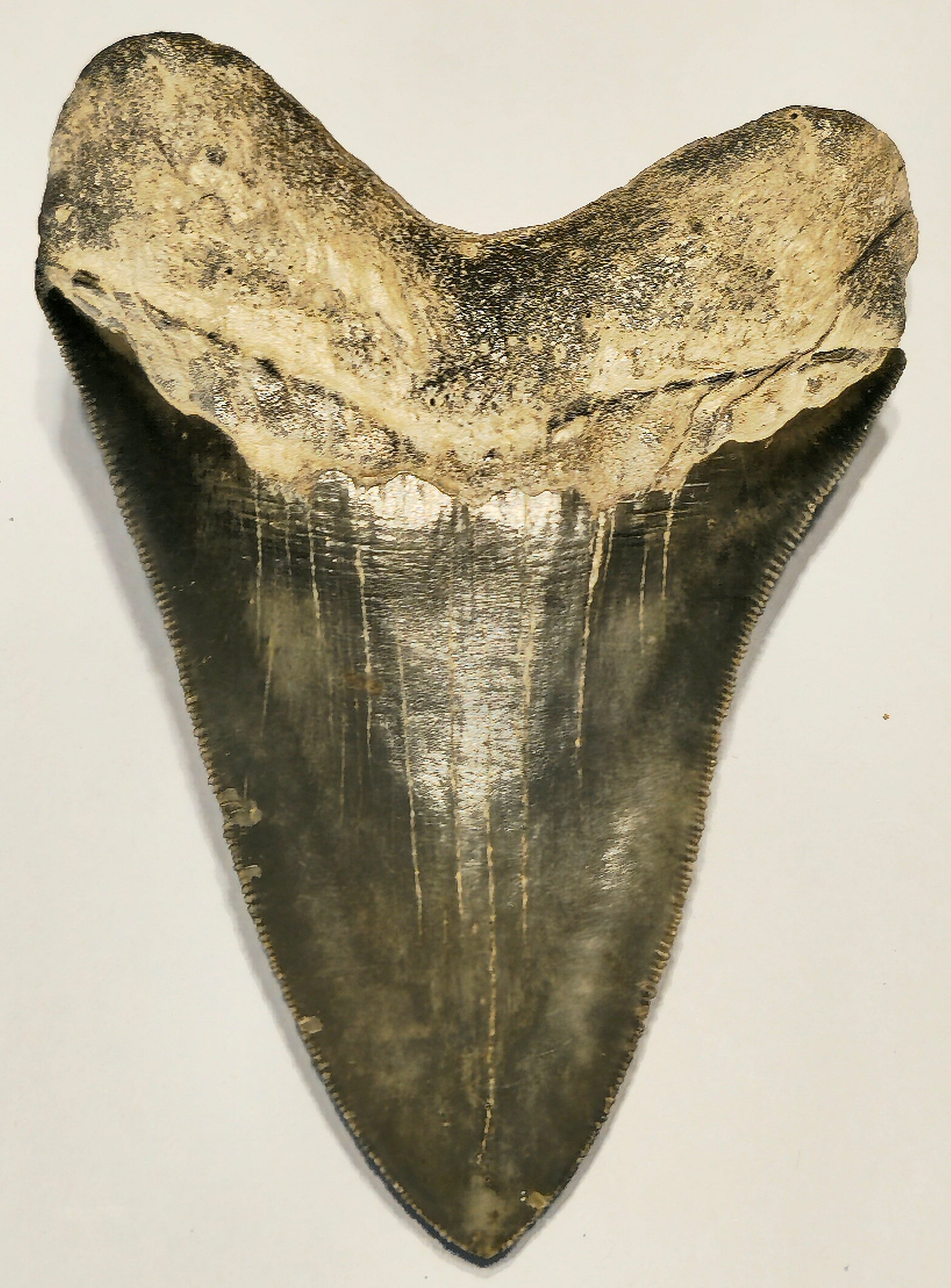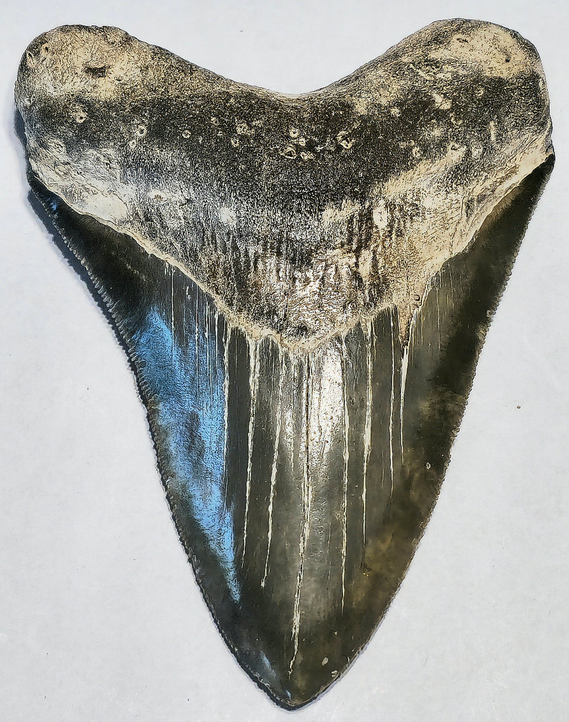 4.32” American Megalodon Tooth (Southeast U.S.A) The metallic coloring gives this tooth the status of a power tooth.