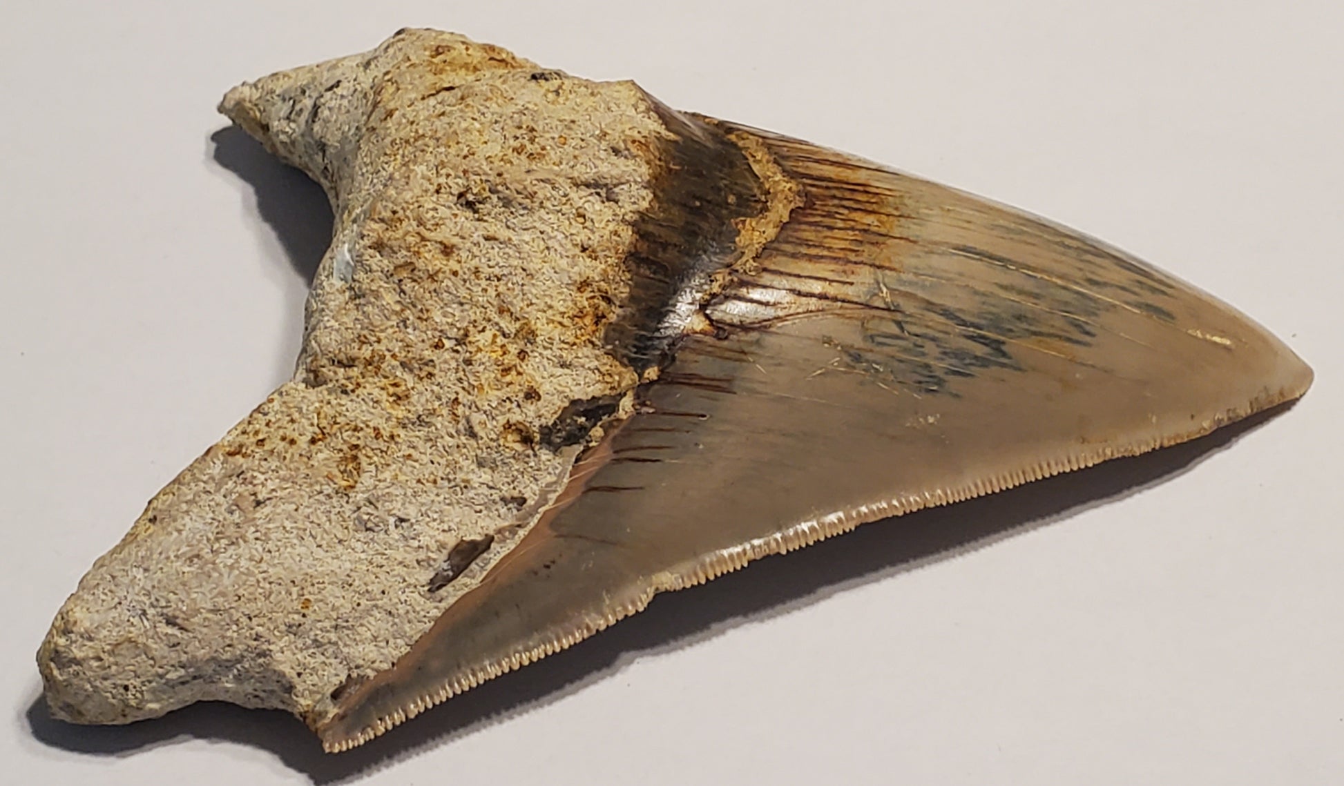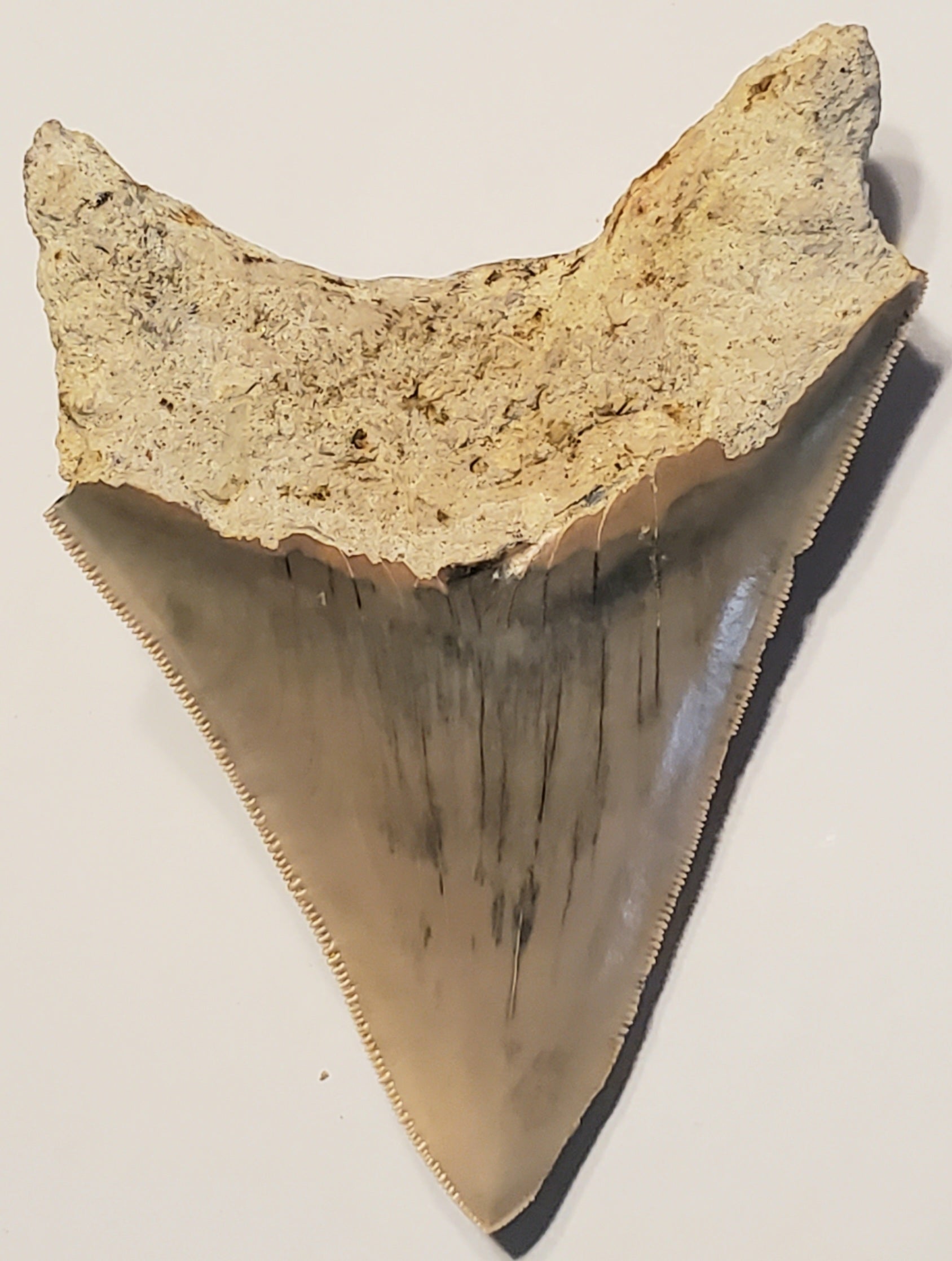 Fantastic 4.74' colorful Indonesian Megalodon tooth.