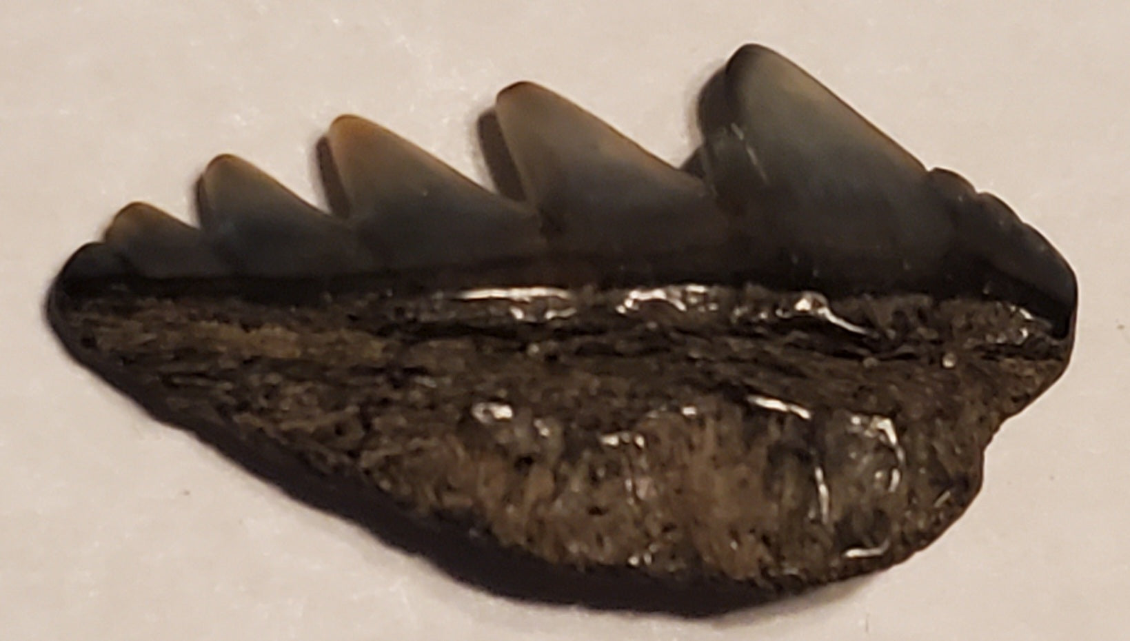 This is a beautiful Cow Shark (Notorynchus sp.) tooth from Calvert Cliffs Maryland. It is Miocene age.This is a species of shark that existed with Megalodons.