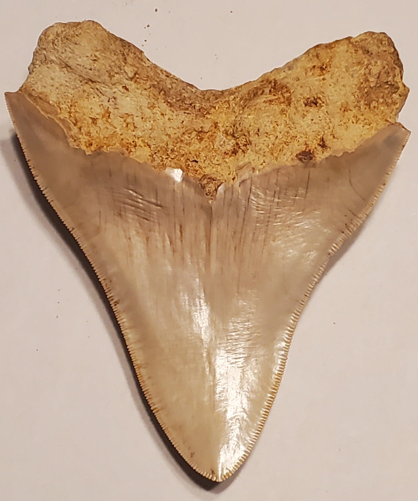 Incredible 4.45"' Indonesian Megalodon tooth from West Java Indonesia.