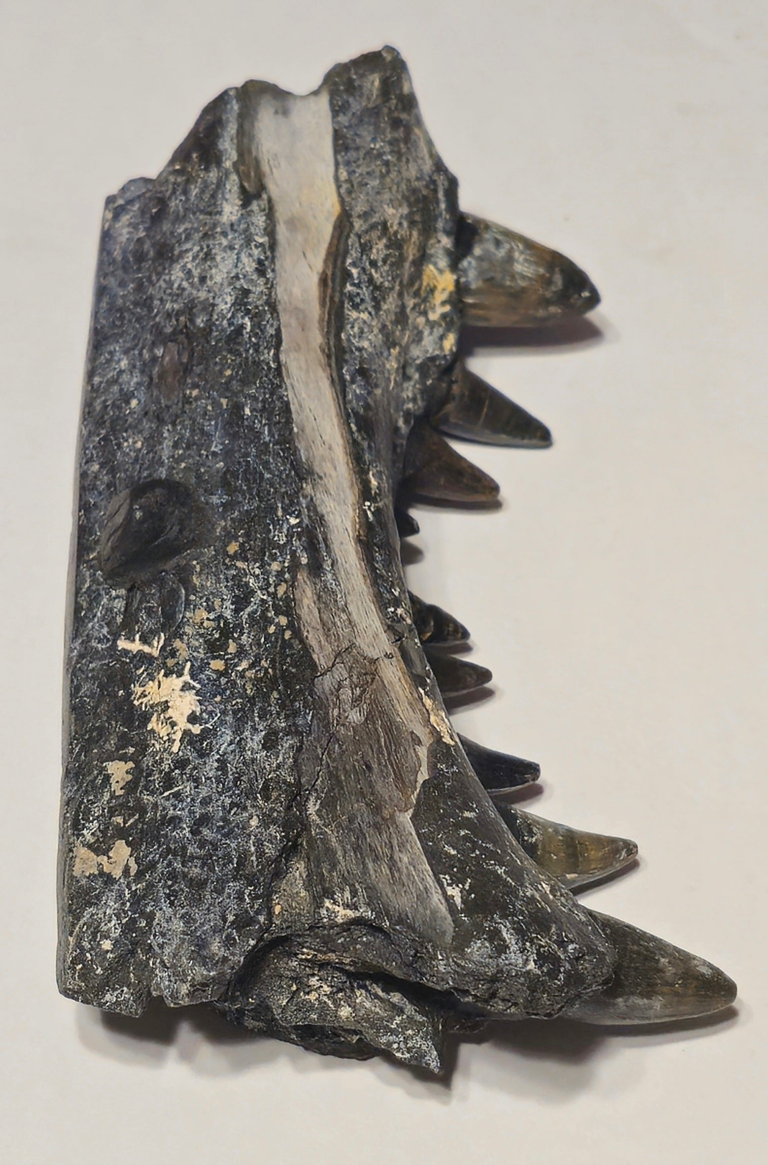 This heavily mineralized, 2 million year old section of fossilized Alligator lower jaw dates to the early Pleistocene in Florida.